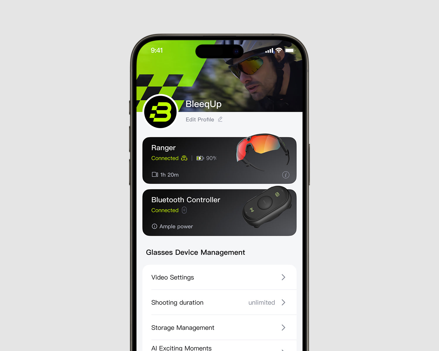 The BleeqUp App centralizes camera settings, sports data, and media management, significantly enhancing the overall glasses experience.